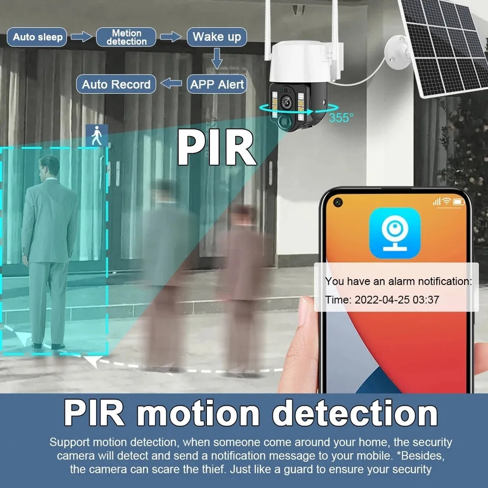 ๐๐ทโย Solar-Powered Camera โ Eco-friendly, hassle-free security with continuous power and clear surveillance, day or night!